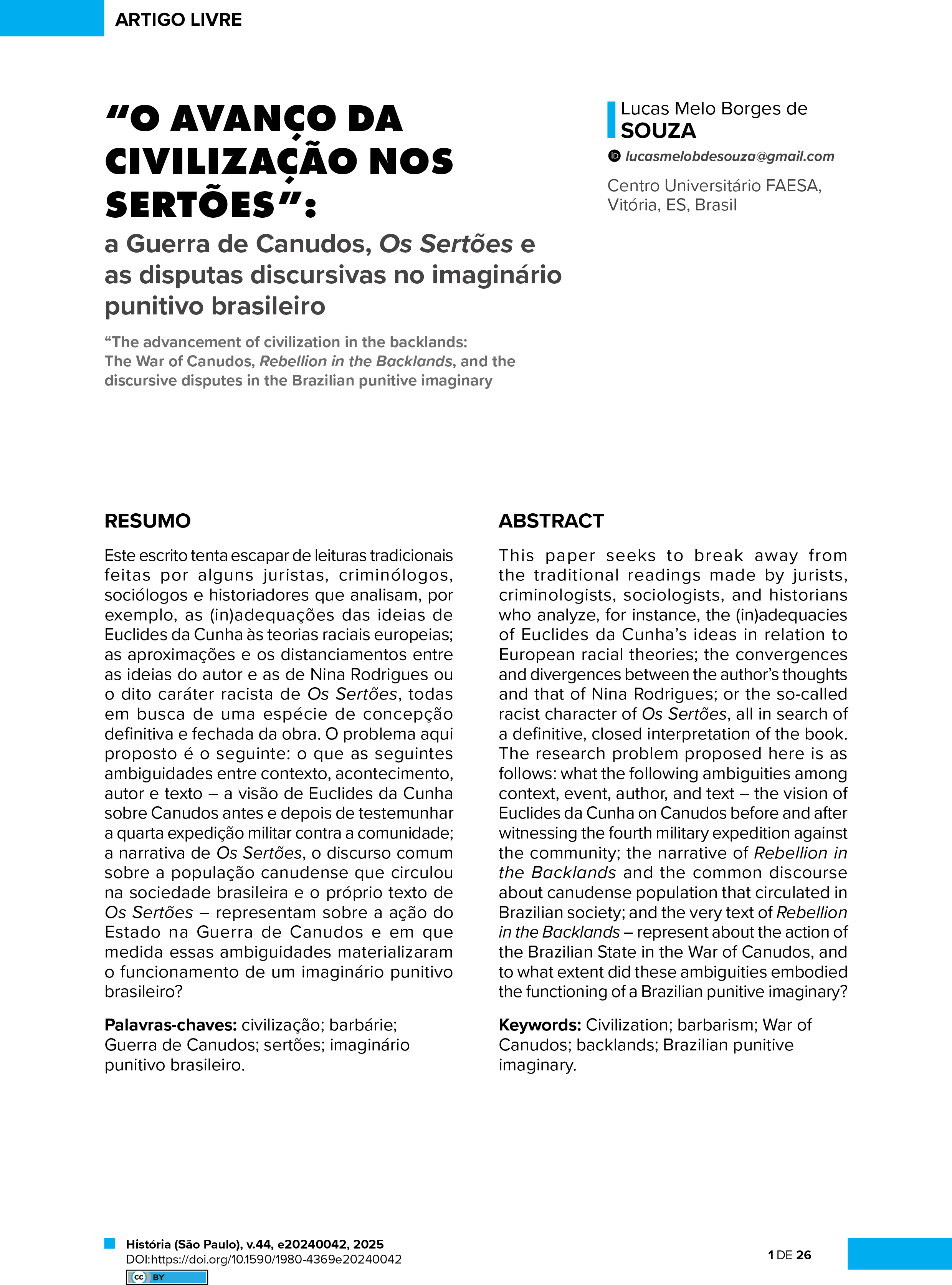“O AVANÇO DA CIVILIZAÇÃO NOS SERTÕES”: A GUERRA DE CANUDOS, OS SERTÕES E AS DISPUTAS DISCURSIVAS NO IMAGINÁRIO PUNITIVO BRASILEIRO