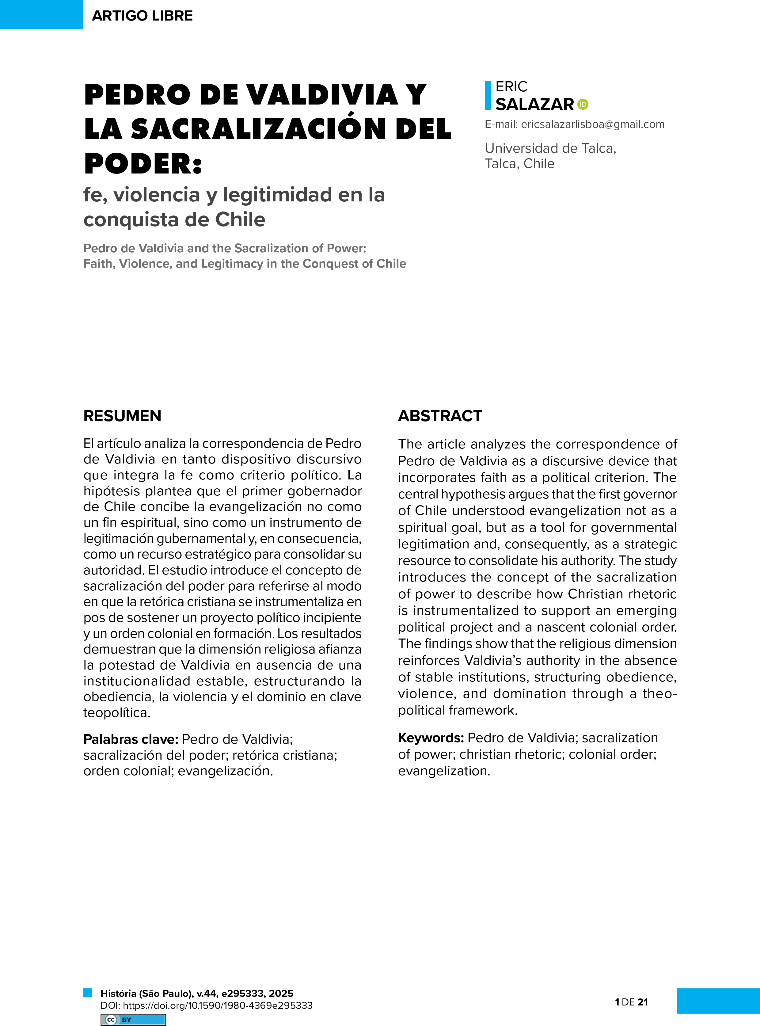 PEDRO DE VALDIVIA Y LA SACRALIZACIÓN DEL PODER: FE, VIOLENCIA Y LEGITIMIDAD EN LA CONQUISTA DE CHILE